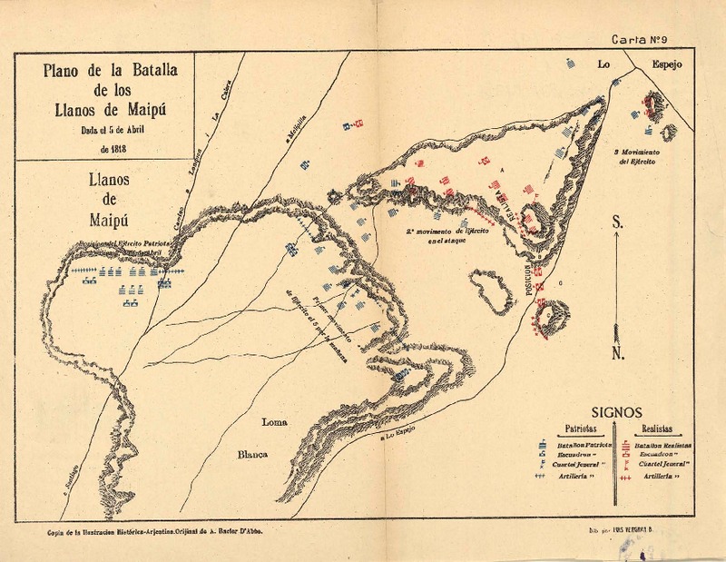 Plano de la batalla de los Llanos de Maipú dada el 5 de abril de 1818. [material cartográfico] :
