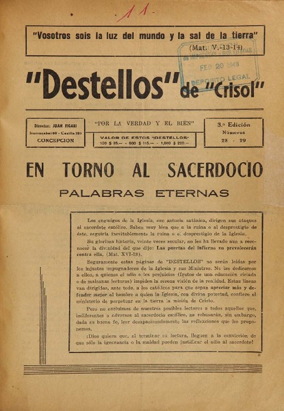 Amancer Organo de la Oficina Relacionadora e Informativa del Social Cristianismo de Chile.
