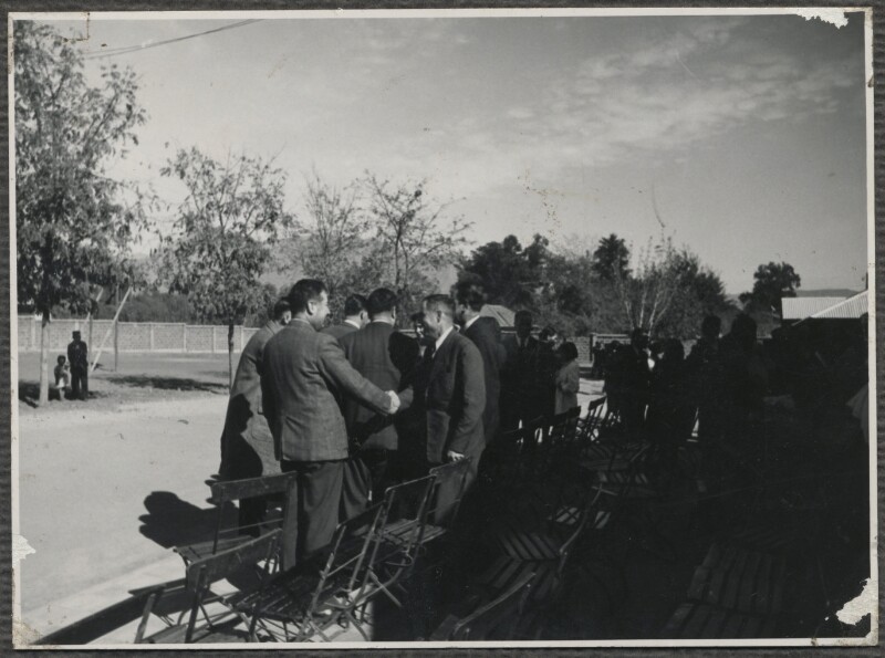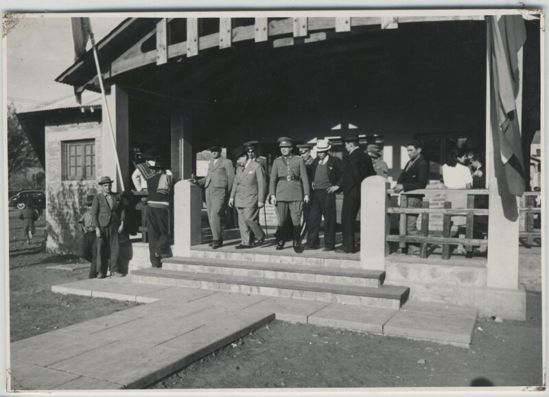 Habitantes y autoridades en el complejo para trabajadores de la Hacienda San Vicente [Fotografía].