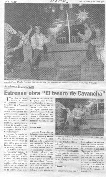 Estrenan obra "El tesoro de Cavancha" [artículo]