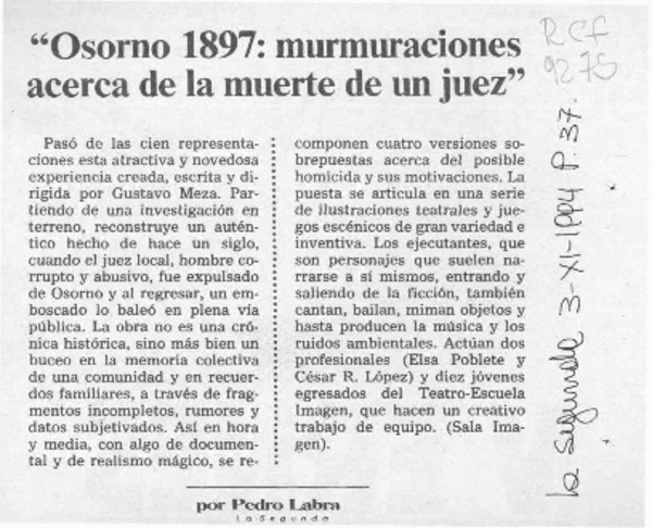 "Osorno 1897, murmuraciones acerca de la muerte de un juez"  [artículo] Pedro Labra.