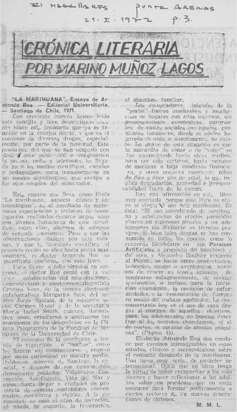 La marihuana" [artículo] Marino Muñoz Lagos.