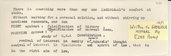 [Carta] [1951] [a] [Gabriela Mistral] [manuscrito] Ezra Pound.
