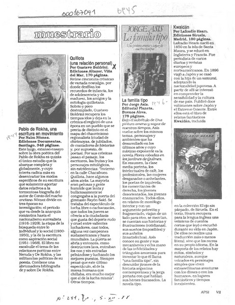 Autores argentinos - BOLDRINI, GUSTAVO - ESPINOZA, VICENTE - Rokha, Pablo de - ASIS, JORGE - NOMEZ, NAIN - DIEGUEZ ROJAS, VIOLETA - Autores chilenos - PARA UNA HISTORIA DE LOS POBRES DE LA CIUDAD - FAMILIA TIPO, LA - JUGANDO CON LAS PALABRAS - PABLO DE ROKHA, UNA ESCRITURA EN MOVIMIENTO - QUILLOTA, UNA RELACION PERSONAL