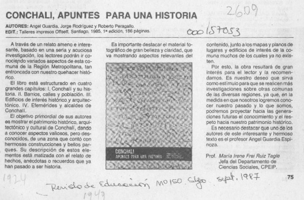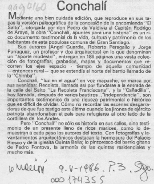 En un libro muy sabido hacen el retrato histórico de Conchalí [artículo].