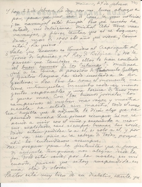 [Carta] [1958?] feb. 24, [Cuba?] [a] [Gabriela Mistral] [manuscrito] Petrona [Noda].