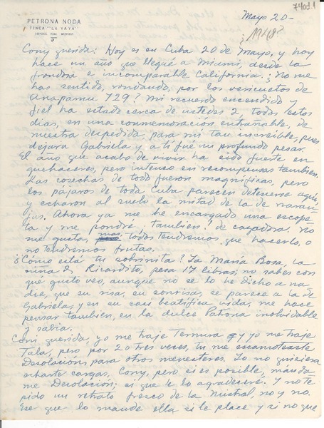 [Carta] 1948 mayo 20, La Yaya, [Cuba] [a] Consuelo Saleva [manuscrito] Petrona Noda.