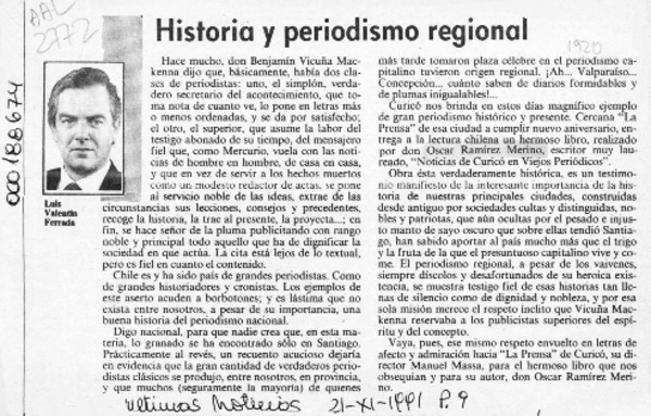 Historia y periodismo regional [artículo] Luis Valentín Ferrada.