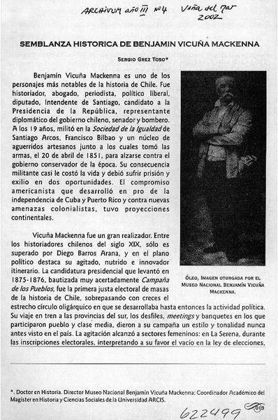 Vicuña Mackenna, Benjamín - Autores chilenos - Historia de Santiago