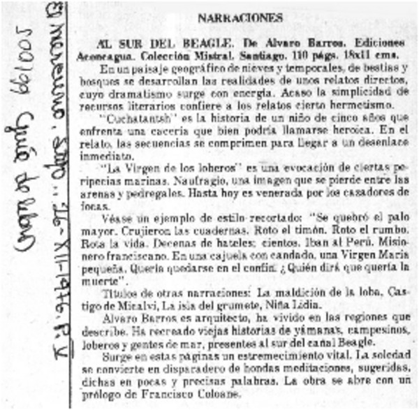 Barros, Alvaro - Autores chilenos - Al sur del Beagle