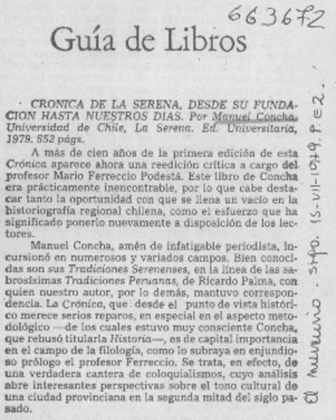 Concha, Manuel - Crónica de La Serena - Autores chilenos