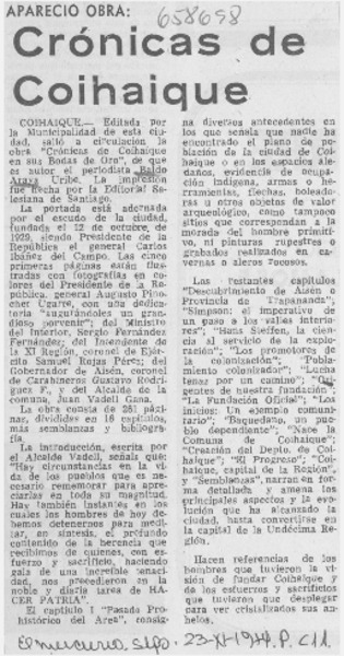 Araya Uribe, Baldo - Autores chilenos - Crónicas de Coyhaique en sus bodas de oro