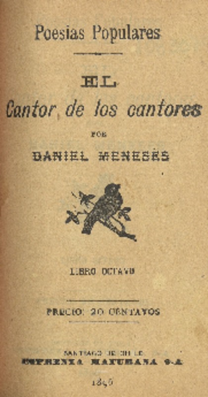 El cantor de los cantores : poesías populares : libro octavo por Daniel Meneses.