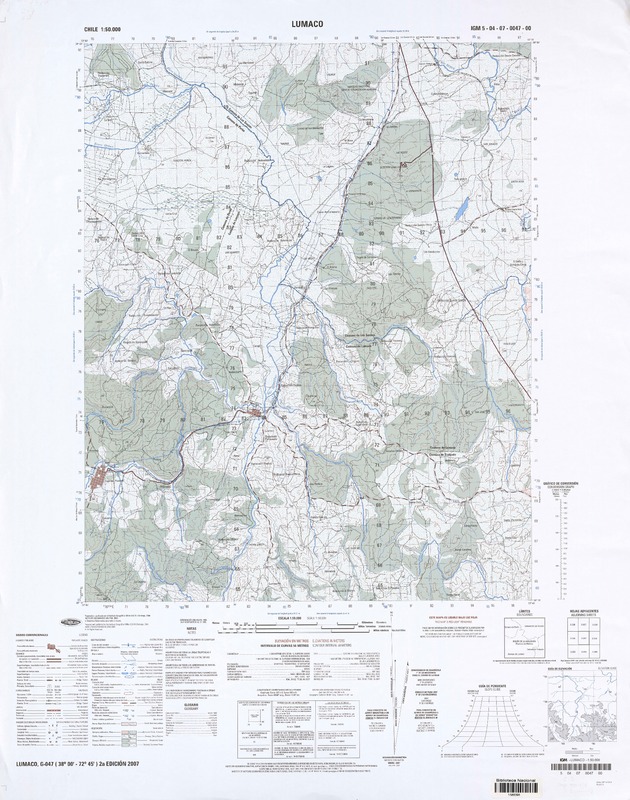 Vilcún G-073 (38° 30'- 72° 00') [material cartográfico] preparado y publicado por el Instituto Geográfico Militar.