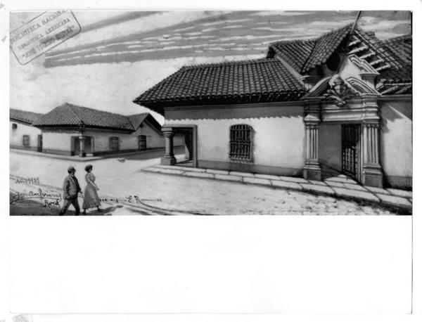 [Vista panorámica de Santiago. Arrabal de La Cañada, dibujo] [fotografía].