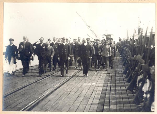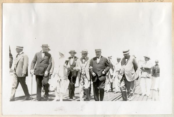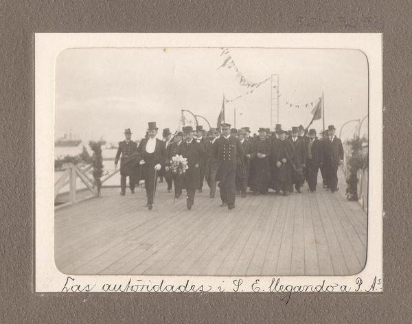 [Agustín Edwards, Pershing y Lassiter en dirección al muelle en donde se embarcó Pershing de regreso a A E. U.] [fotografía]