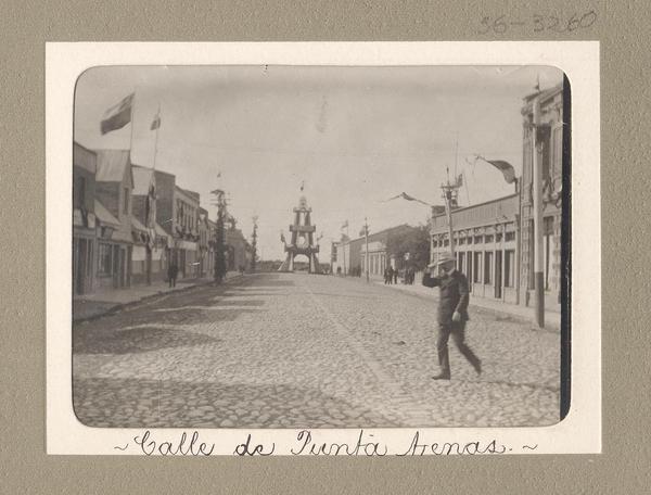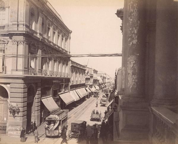 [Alameda de las Delicias (hoy B. O'Higgins) frente a la calle Claras (hoy Mac Iver) en el año 1906] [fotografía].