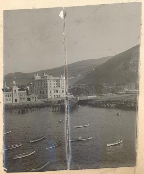 [Vista general de Valparaíso desde el dique, visualizando las edificaciones, el mar, y de fondo los cerros] [fotografía] Fotografía Leblanc.
