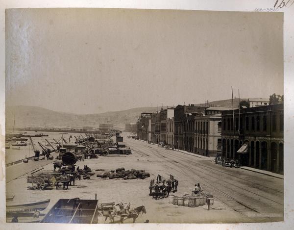 [Vista del malecón, desde los almacenes fiscales de Valparaíso] [fotografía] Fotografía Leblanc.