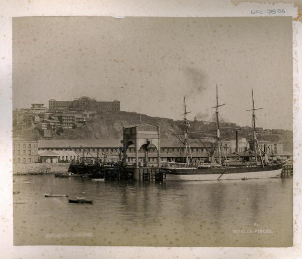 [Vista principal del muelle fiscal de Valparaíso] [fotografía] Fotografía Leblanc.