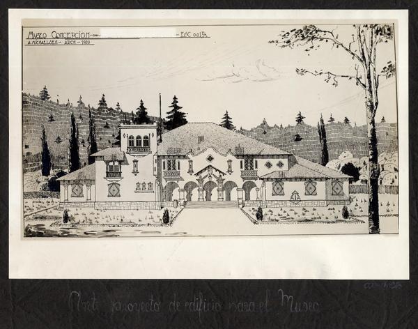 [Album Museo de Historia Natural de Concepción]: Ante-Proyecto Museo, Primer Piso, frente Parque Ecuador [Autor: Arquitecto A[rnoldo] Michaelsen] [fotografía].