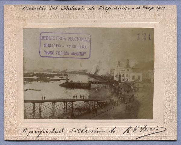 [Vista del malecón de Valparaíso, del incendio del 12 de mayo de 1903] [fotografía].