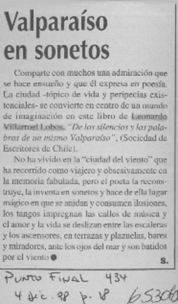 Villarroel Lobos, Leonardo - Autores chilenos - De los silencios y las palabras de un mismo Valparaíso