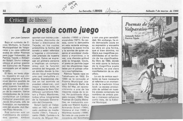Sobre "Poemas de jugar Valparaíso" [artículo] Allan Browne Escobar.