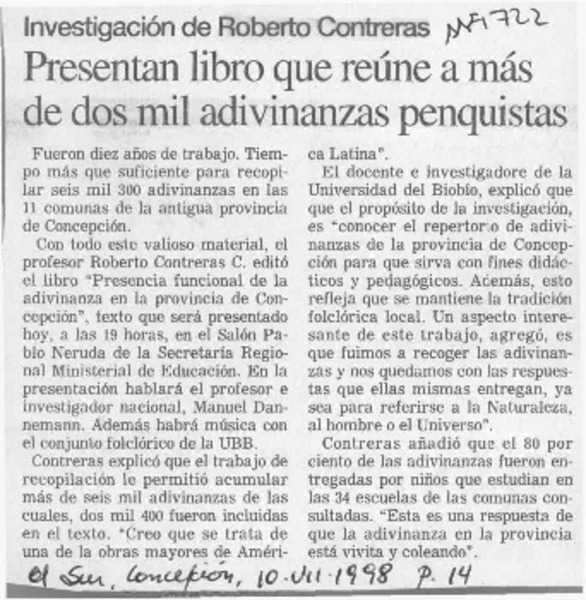Presentan libro que reúne a más de dos mil adivinanzas penquistas [artículo].