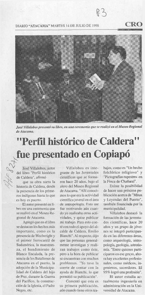 "Perfil histórico de Caldera" fue presentado en Copiapó [artículo].