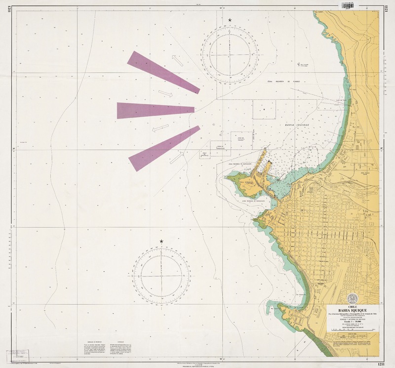 Bahía Iquique [material cartográfico] por el Servicio Hidrográfico y Oceanográfico de la Armada de Chile.