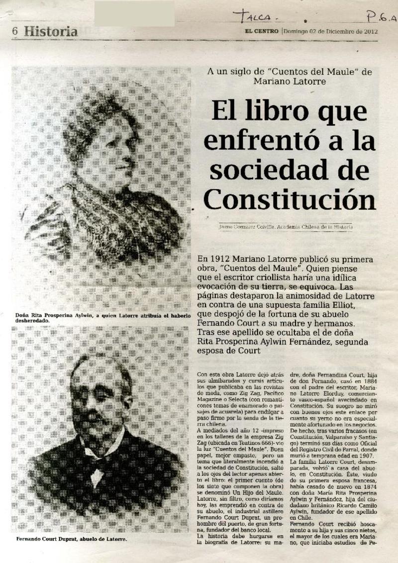 El libro que enfrentó a la sociedad de Constitución [artículo] Jaime González Colville.