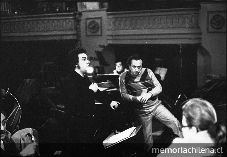Wolf Dieter Ludwig dirigiendo el ensayo en el Teatro de la Opera. Plácido Domingo?. 1977. 1 fotografía:Negativo;35 mm.