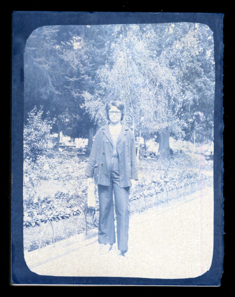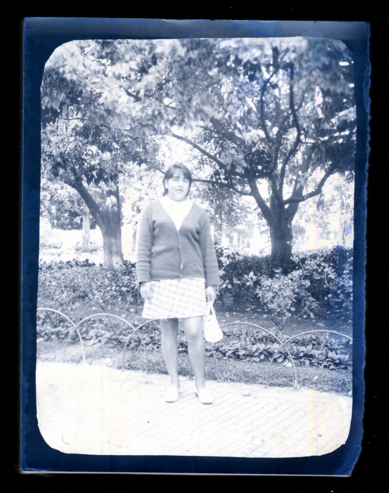 [Mujer con abrigo retratada en plaza Vergara] [fotografía] [Fotografía de Luis Juica].