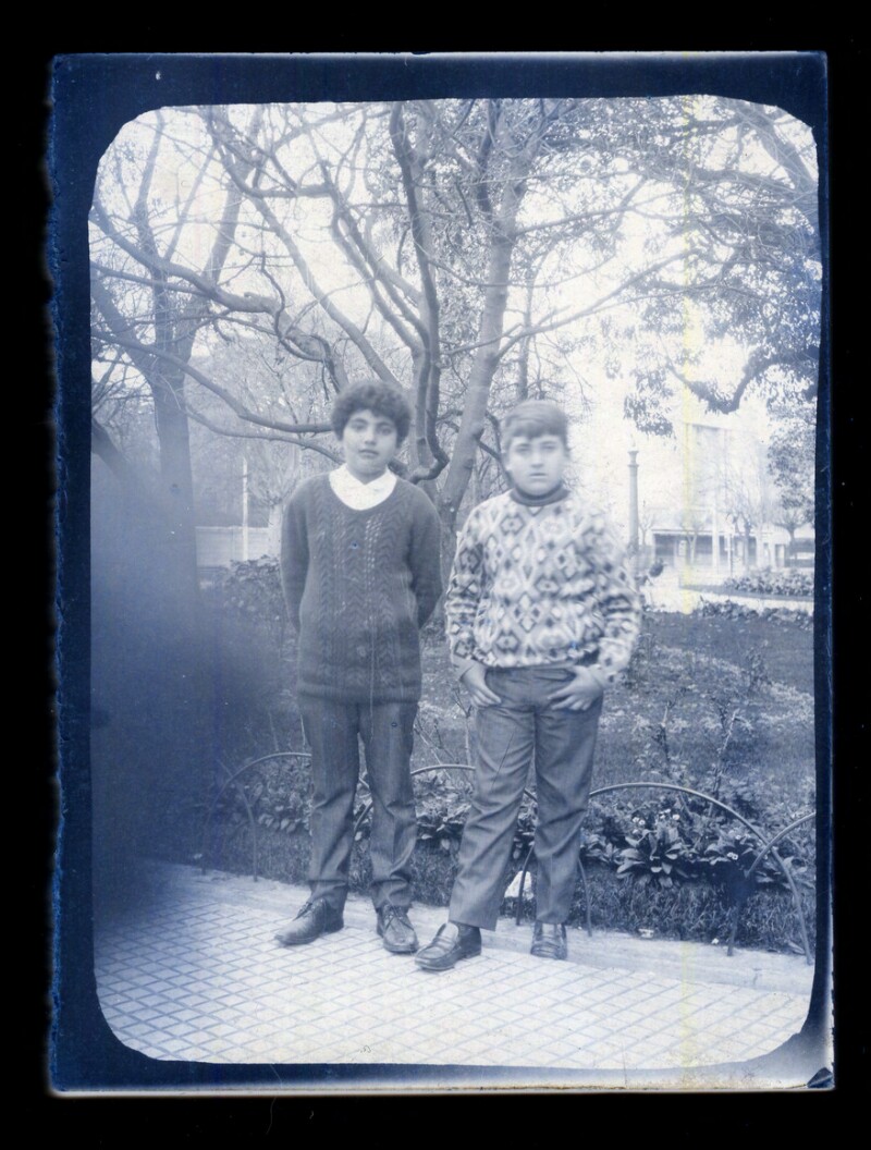 [Dos niños retratados en plaza Vergara] [fotografía] [Fotografía de Luis Juica].