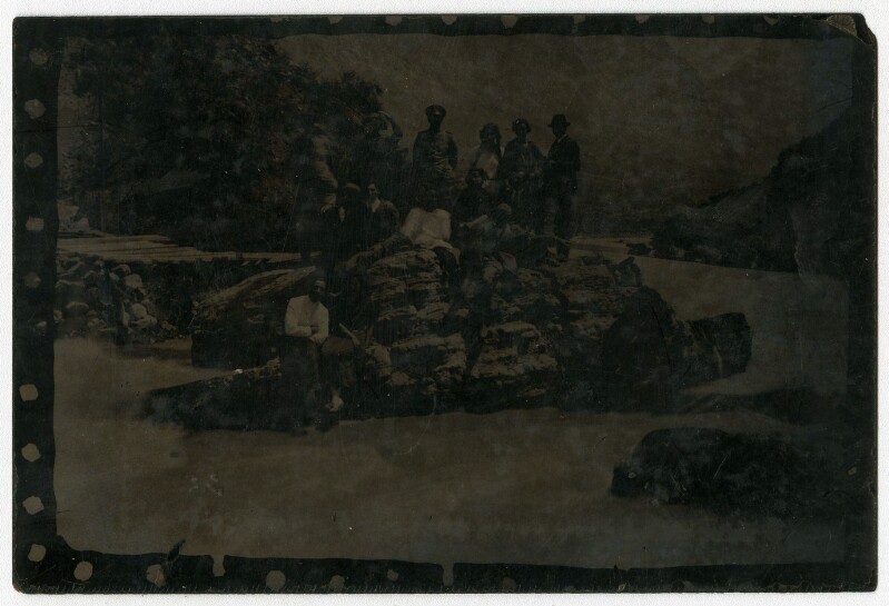 [Personas sobre montículo rocoso en Termas del Flaco] [fotografía].