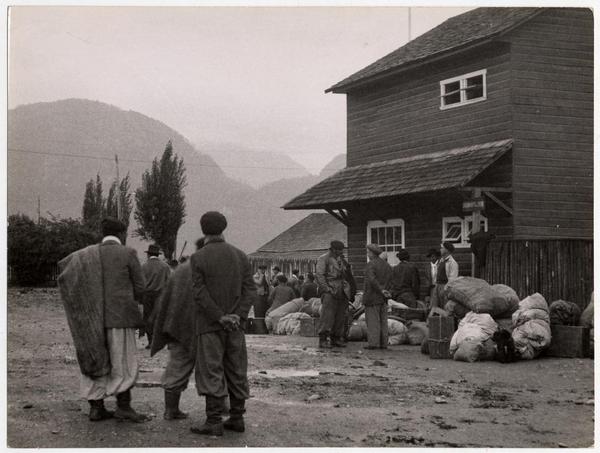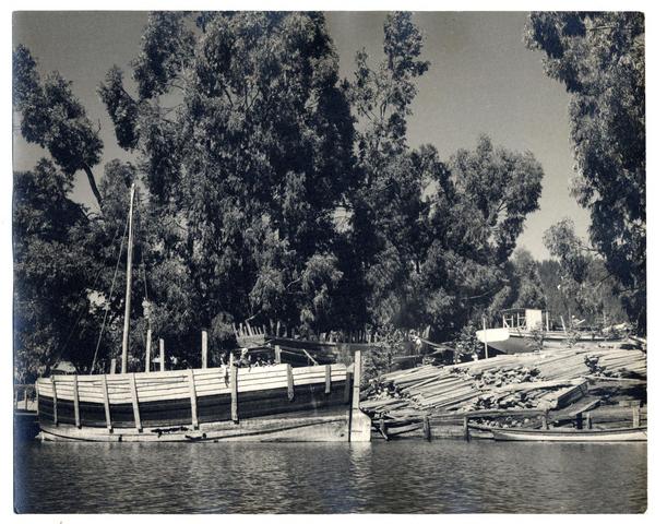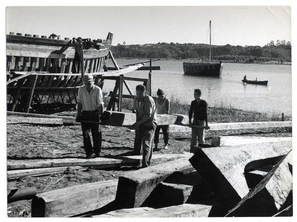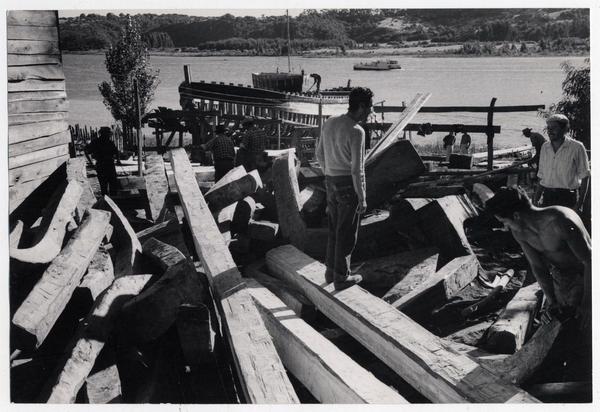 [Trabajadores del Astillero en la ribera del Río Maule] [fotografía] Domingo Ulloa.