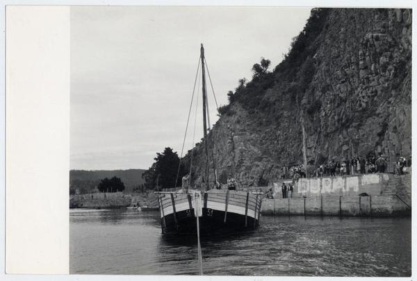 [Trabajadores del astillero, a bordo de un falucho] [fotografía] Domingo Ulloa.
