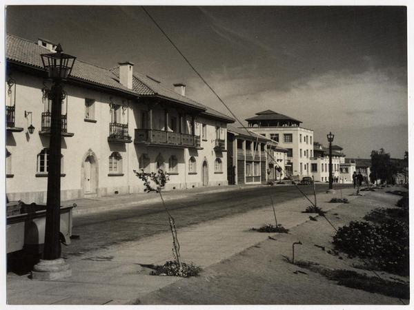 [Vista parcial de la fachada del Teatro Cervantes y otros edificios de Punta Arenas] [fotografía] Domingo Ulloa.