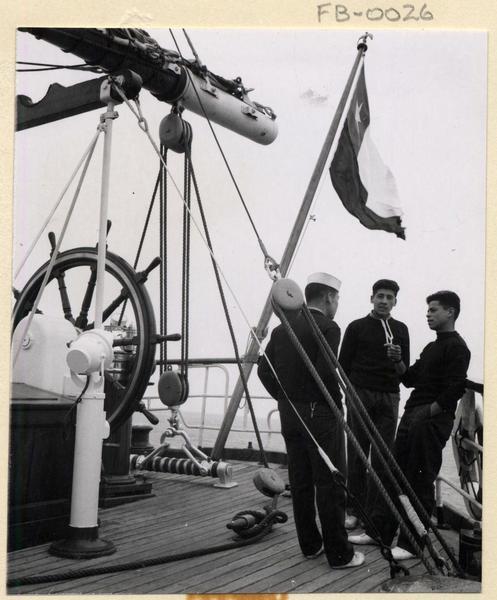 [Tripulantes en la cubierta de "La Esmeralda"] [fotografía] Domingo Ulloa.