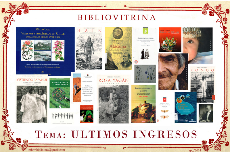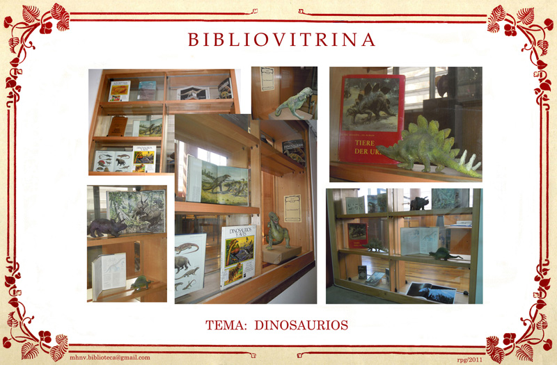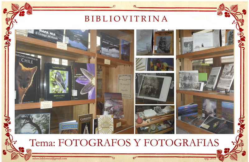 "Bibliovitrinas" es un álbum conformado por una serie de fotografías, que muestran el repertorio de micro-exposiciones montadas en vitrinas de la Biblioteca de nuestro Museo, las que se prepararon con la intención de advertir la existencia de algunos títulos en la colección y de dar a conocer el tipo de material que pueden encontrar los usuarios sobre temas específicos. Algunas de estas exposiciones están apoyadas con la colaboración de otras Secciones del Museo, que facilitan piezas para darle dinamismo a la vitrina y a la vez para revelar algún objeto en especial, relacionado con el tema que se presenta.
