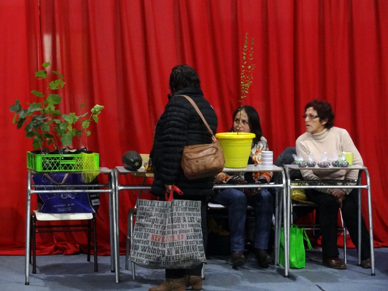 Había gran cantidad de productos locales, semillas de variedades de porotos, chicharos, habas, arvejas, zapallos de todos colores, quinua, manzanas, zanahorias blancas, plantas medicinales, flores, papas nativas y castañas. No faltaba ropa, en especial de niño/a, productos del mar como ulte y cochayuyo, CD de música local, joyas mapuche del retrafe de la comunidad cercana a Las Quemas, piezas en lana de oveja con teñido natural y hasta juguetes.
