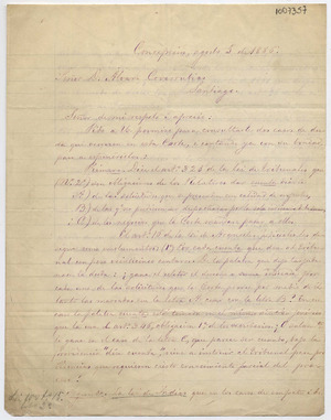 [Carta] 1886 agosto 5, Concepción [a] Don Alvaro Covarrubias [manuscrito] / Risopatron, Carlos. 3 h. ; 27 cm. .
