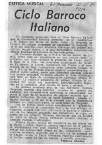Crítica Musical Ciclo Barroco Italiano [artículo] El Mercurio (diario : Santiago, Chile) abr. 21, 1980, p. C-19. .