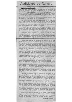 Audiciones de cámara Crítica Musical [artículo] El Mercurio (diario : Santiago, Chile) jul. 19, 1968 .