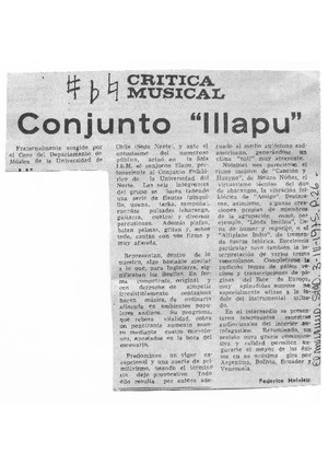 Conjunto "Illapu" Crítica Musical [artículo] El Mercurio (diario : Santiago, Chile) abr. 3, 1975, p. 26. .