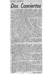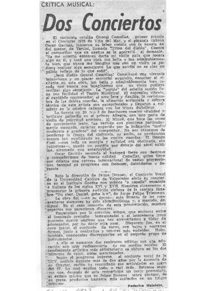 Crítica Musical Dos concierto [artículo] El Mercurio (diario : Santiago, Chile) jul. 23, 1977, p. 39. .