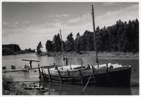 [Trabajadores del astillero a bordo de un falucho en el río Maule] [fotografía] / Domingo Ulloa. [Constitución] : Domingo Ulloa, [entre 1950 y 1960]. Fotografía : monocromo, gelatina sobre papel fibra ; 18 x 12 cm. .