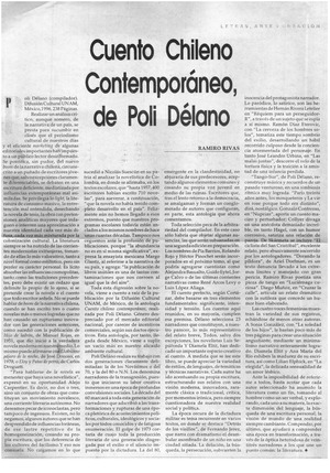 Cuento chileno contemporáneo, de Poli Délano [artículo] Ramiro Rivas Pluma y Pincel n° 179 (1998) p. 41 .