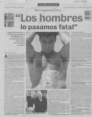 "Los hombres lo pasamos fatal" [entrevista] / [artículo] : Margarita Espinoza Flores. Las Últimas Noticias (Diario : Santiago, Chile)-- jun. 15, 2000, p. 48. .